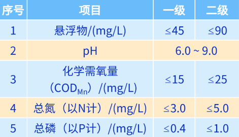 明确向GB 3838中划分为I、Ⅱ、Ⅲ类的水域,以及GB 3097中划分为第一类、第二类的海域排放的水产养殖尾水,执行一级限值;向GB 3838中划分为IV、V类的水域,GB 3097中划分为第三类、第四类的海域,以及其他未明确环境功能的受纳水体排放的水产养殖尾水,执行二级限值。