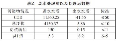 通过对餐厨垃圾资源化污水处理各项技术的应用,污水中的各项指标显著降低废水处理前以及处理后的情况见表2。