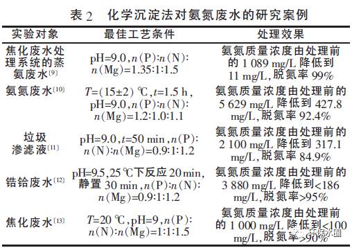2、化学沉淀法(磷酸铵镁沉淀法)