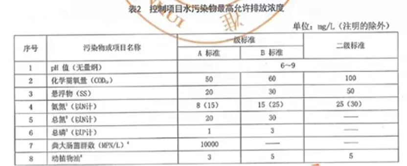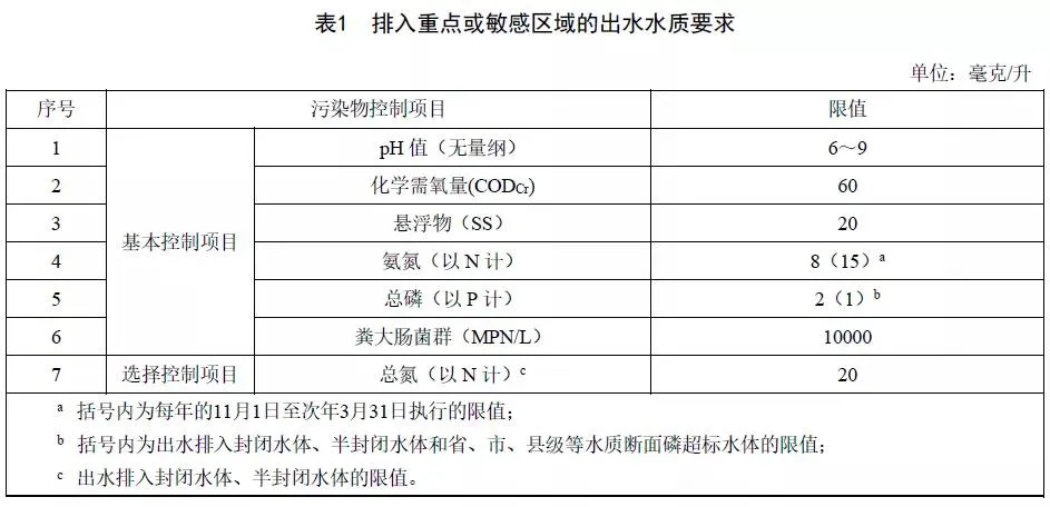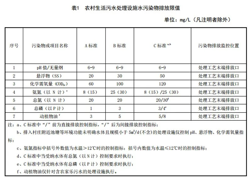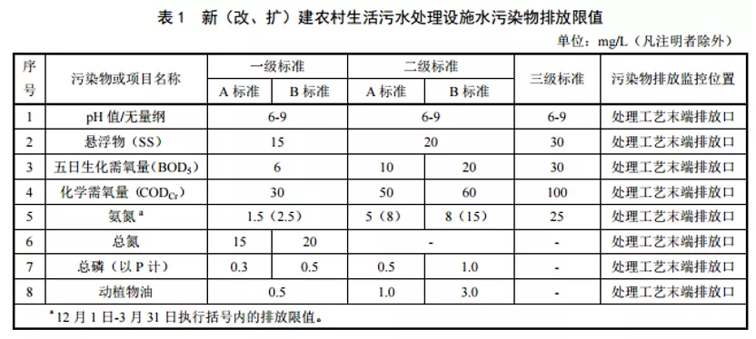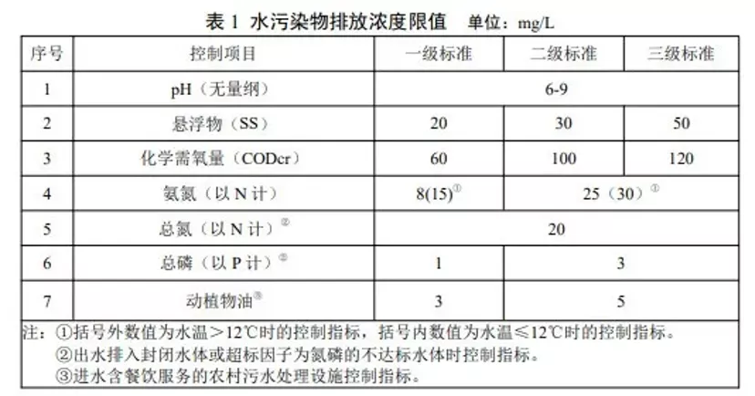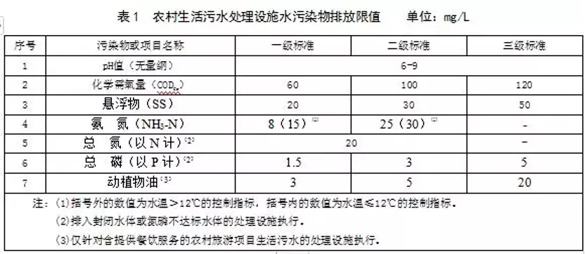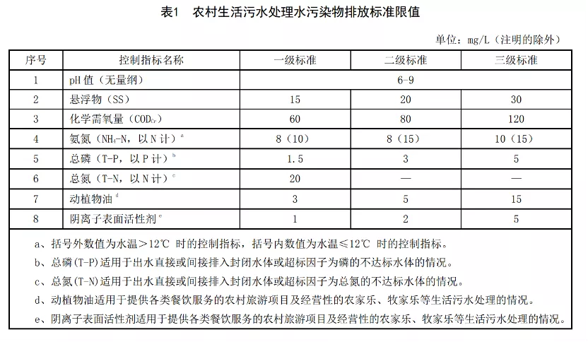 《农村生活污水集中处理设施水污染物排放标准》: