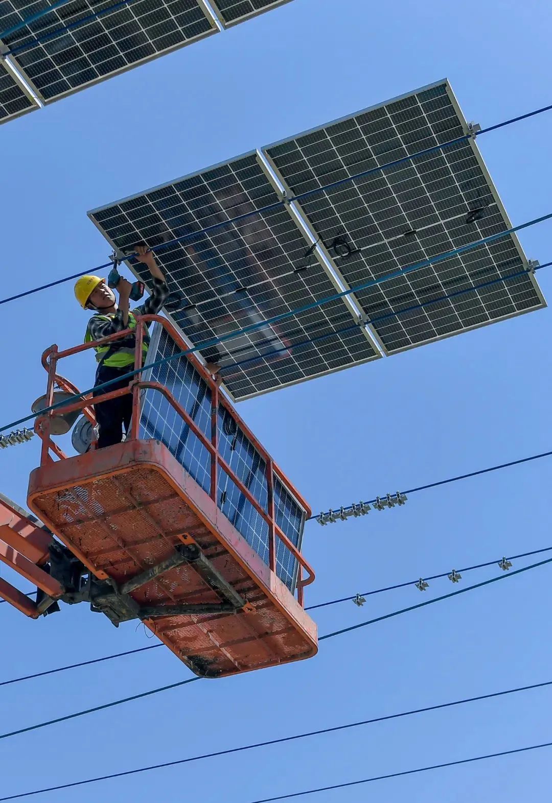预计只需要最后几天,5.4万块光伏板将全部安装到位,并具备局部并网发电条件。