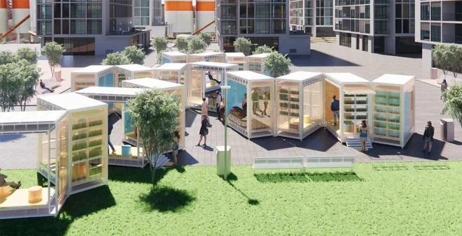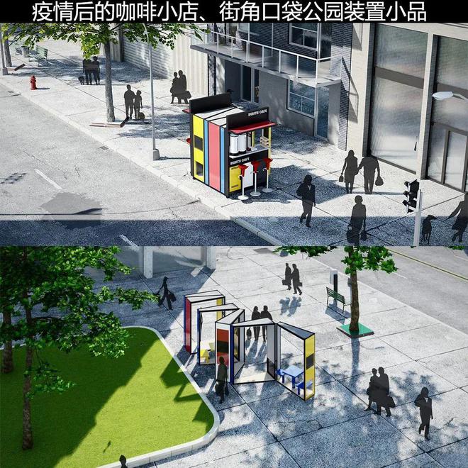 设计充分考虑平疫转换,疫情后检测亭可改造为运动补给站、共享书吧、mini便民服务站、萌宠之家等,进行二次利用,自成一道城市街景。