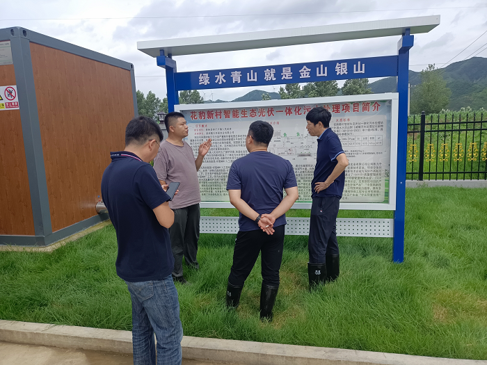 我公司项目经理刘经理带领对方参观了整个现场,并详细介绍了花豹新村智能生态光伏一体化污水处理项目使用的高端核心工艺,教授及领导充分肯定了我公司的技术实力,并对该项目进行高度的评价。