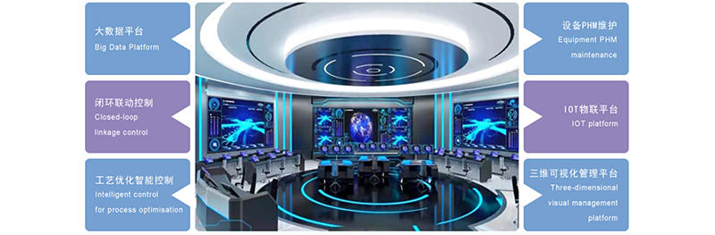 通过网络升级、设备更换、线路升级、软件更新升级改造后自动化系统是由大数据平台、闭环联动控制系统、工艺优化智能控制、设备PHM维护系统、IOT物联网平台、三维可视化现代管理平台组成的自控系统。