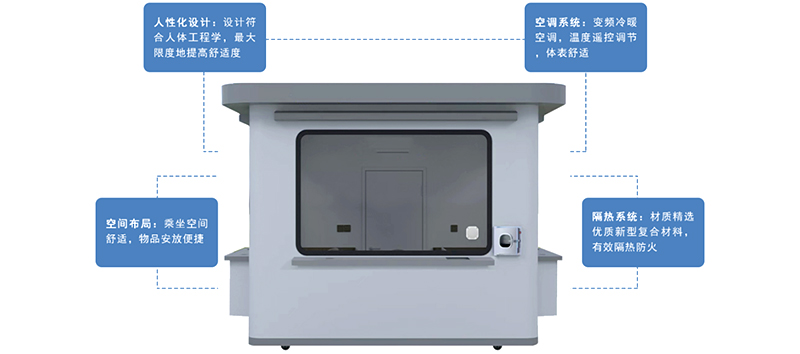 设备主体可选配不锈钢、碳钢结构,外保温采用金属雕花板;整体成品运输,可灵活定制适应各种场地,设备内根据需求配备空调、新风系统等配置。