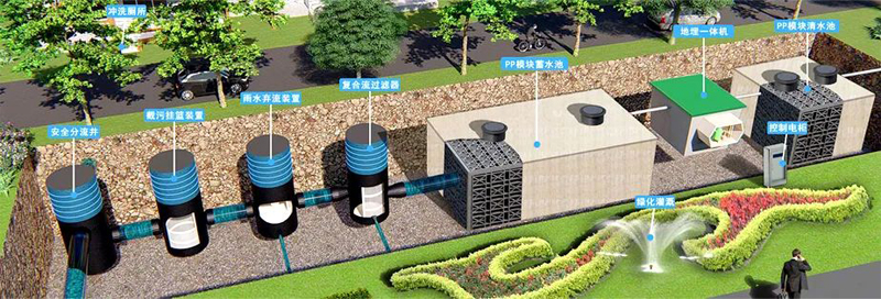 雨水循环净化系统,将雨水收集后,按照不同的需求对收集的雨水进行处理后达到符合回用标准的系统。雨水循环净化系统科学、合理、高效地利用雨水资源缓解城市缺水,而且能涵养与保护水资源,控制城市地下水超采带来的漏斗效应与沉降,减轻水体污染以及改善城市生态环境。